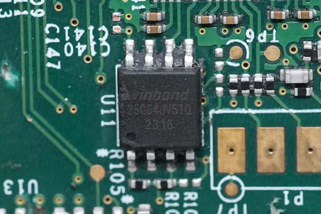 主控芯片外置存储器来自华邦,型号为W25Q64JVSSIQ,容量为8MB,采用SOP8封装。