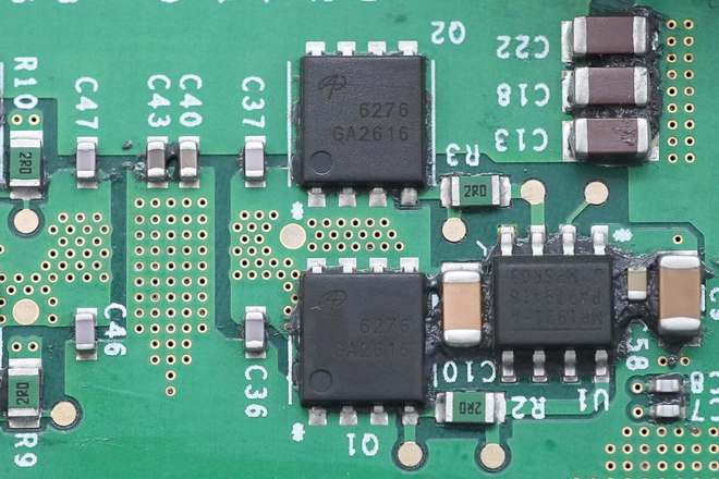 升压开关管来自万国半导体,型号AON6276,NMOS,耐压80V,导阻2.6mΩ,具备低导通电阻,低栅极电荷和低输出电容,采用DFN5*6封装。